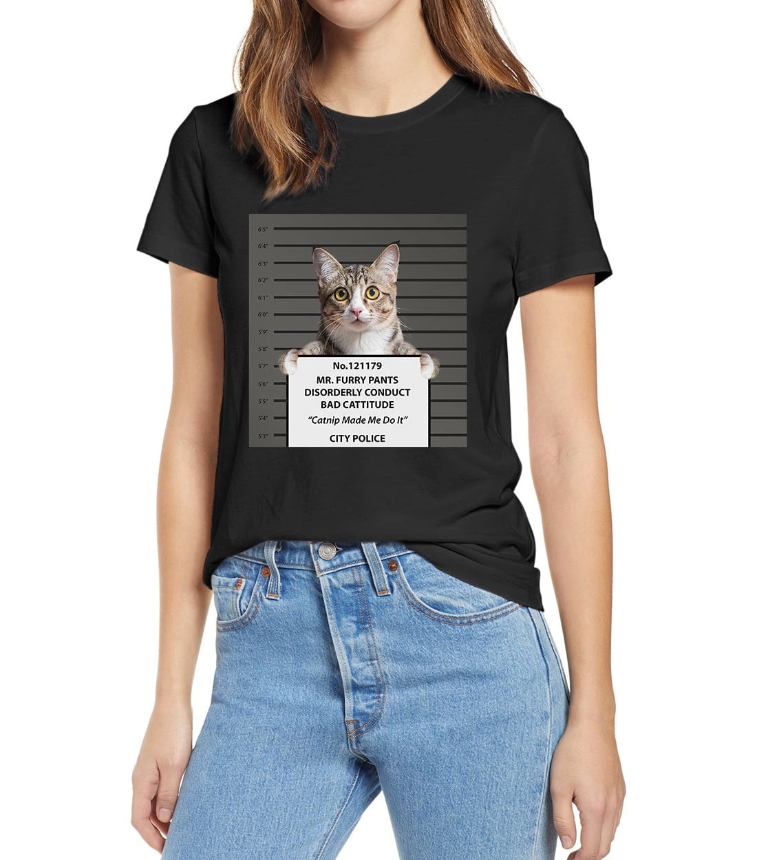 Envmenst Funny Cat No 121179 Mr Furry Pants Disorderly Conduct Bad Cattitude Catnip Made Me Do It City Police Men S T Shirt Walmart Com